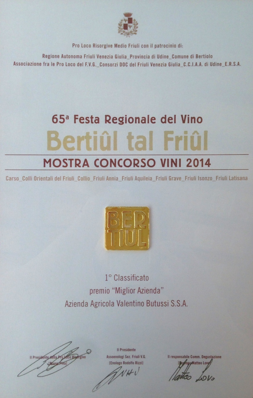 L’Azienda Valentino Butussi è stata premiata anche quest’anno con la Medaglia d’Oro durante la 65^ Fiera Regionale dei Vini di Bertiolo.